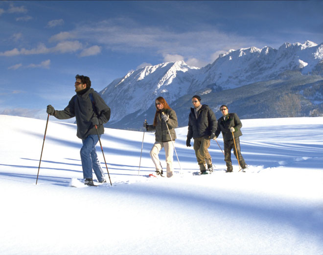 Ausrüstung: Wanderstöcke, Schneeschuhe oderfestes Schuhwerk