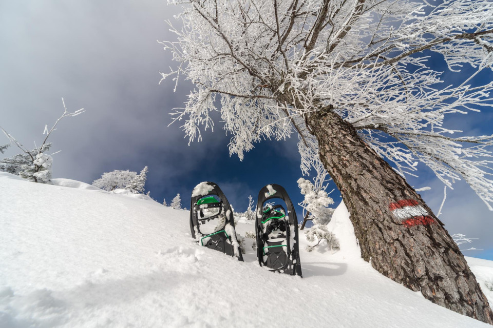 Ausrüstung: Schneeschuhe oder festes Schuhwerk, Wanderstöcke